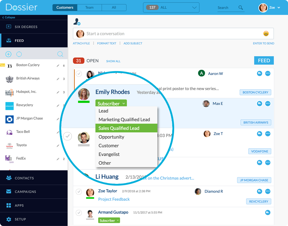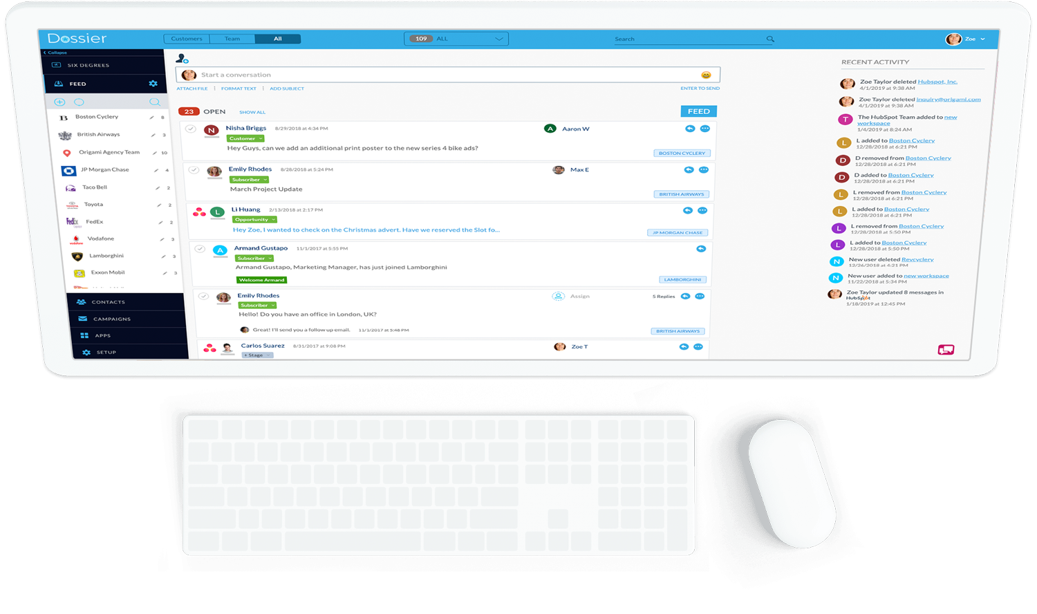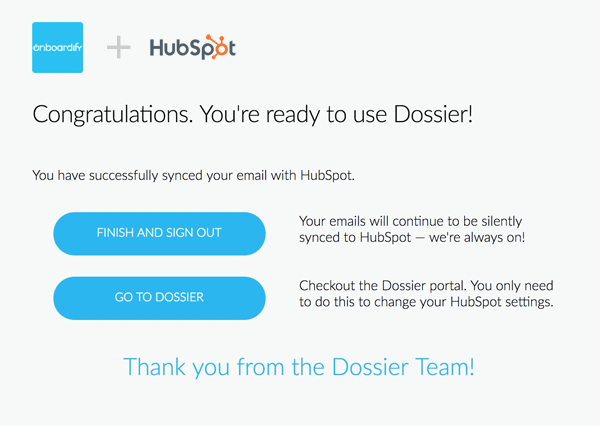 Dossier organizes customer conversations in Hubspot. Sync contacts, email and chats with HubSpot automatically.